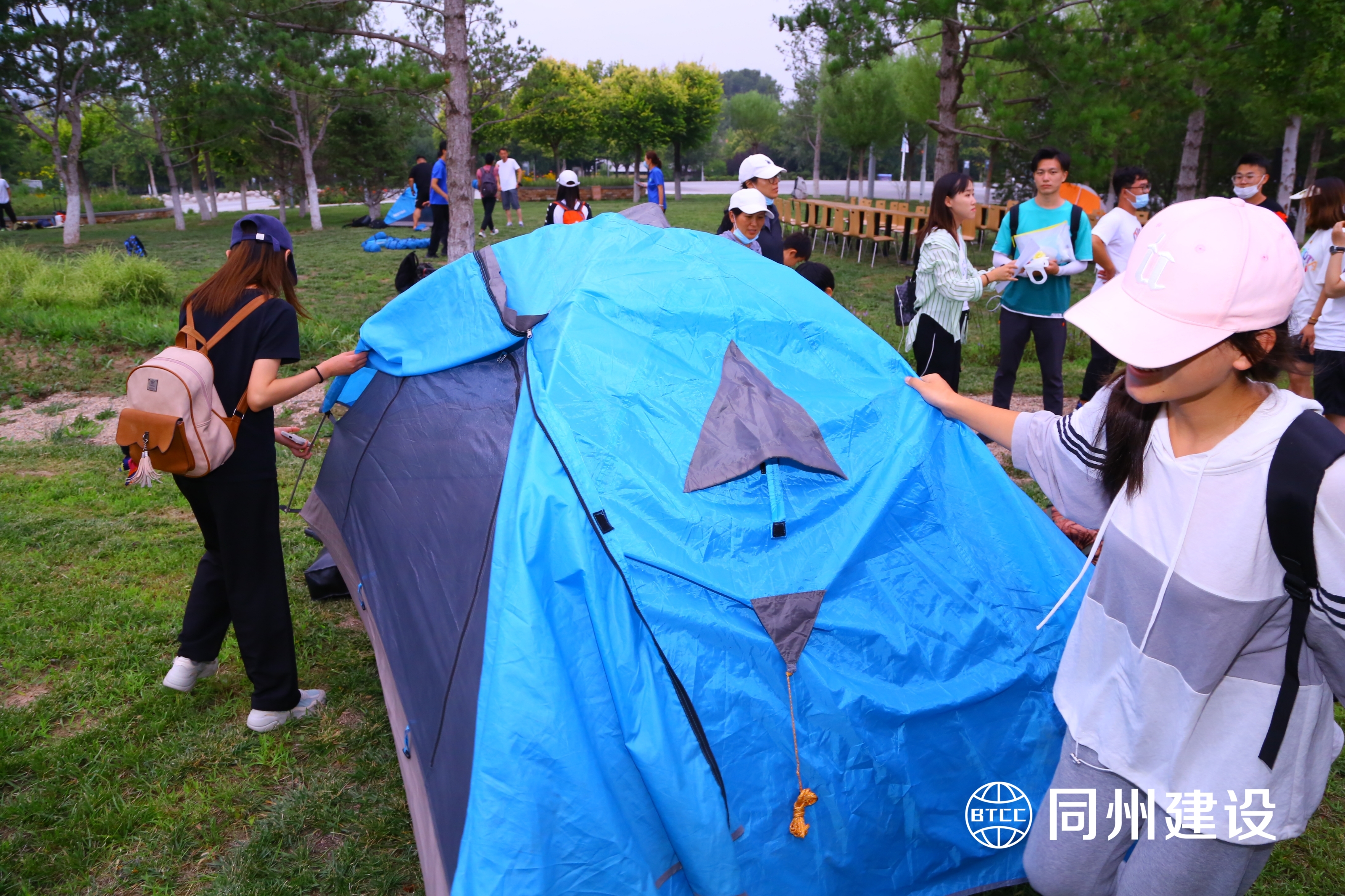 與大家齊心協(xié)力親手搭建帳篷