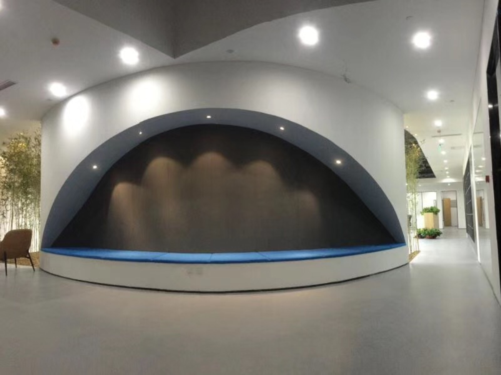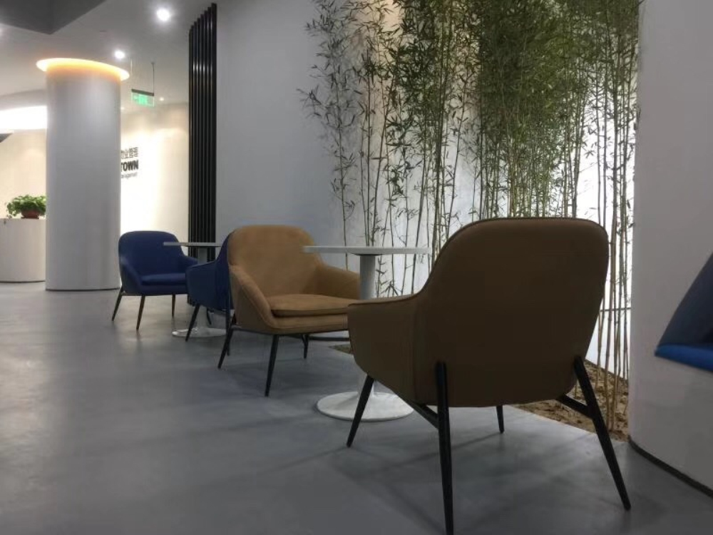 造型上打破常規(guī),弧形背景墻給人眼前一亮隔的感覺(jué),色彩設(shè)計(jì)上比較簡(jiǎn)潔,巧妙地融入了自然竹子造景,使用竹子和其他材質(zhì)相呼應(yīng),室內(nèi)色彩純凈,氛圍悠閑,創(chuàng)造一個(gè)安靜的公共空間,提供更好的工作環(huán)境。